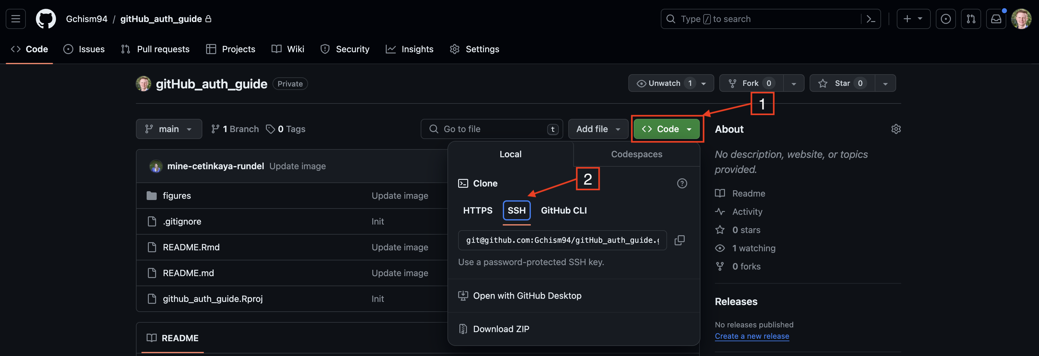 .sshin your home directory, having access to the file is equivalent to having your password (at least as far as git interactions are concerned). By default, permissions should be set such that only your user account should be able to access that file. If you would like additional security you can encrypt this key using a passphrase (i.e. password) viacredentials::ssh_update_passphrase()which will then be required each time the key pair is used (e.g. pushing, pulling, etc.).I get an error about an unprotected private key file when trying to use git