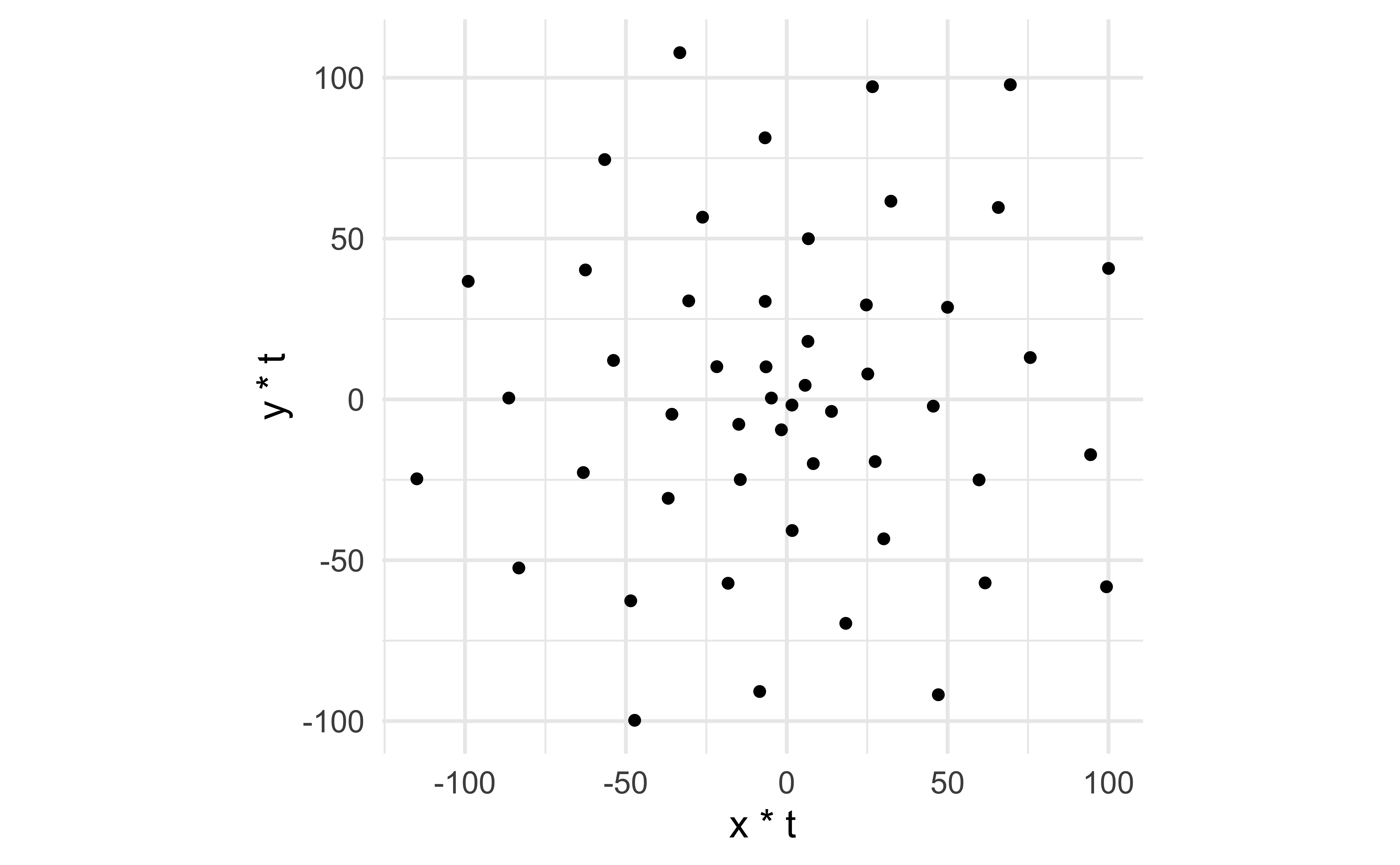 # set golden angleangle <- pi * (3-sqrt(5))# set number of pointspoints <-50# make data framedf <-tibble(i =1:points,t = (1:points) * angle,x =sin(t),y =cos(t))# plot points in a spiralggplot(df, aes(x = x * t, y = y * t)) +geom_point() +coord_equal()# set golden angleangle <- pi * (3-sqrt(5))# set number of pointspoints <-50# make data framedf <-tibble(i =1:points,t = (1:points) * angle,x =sin(t),y =cos(t))# plot points in a spiralggplot(df, aes(x = x * t, y = y * t)) +geom_point() +coord_equal()